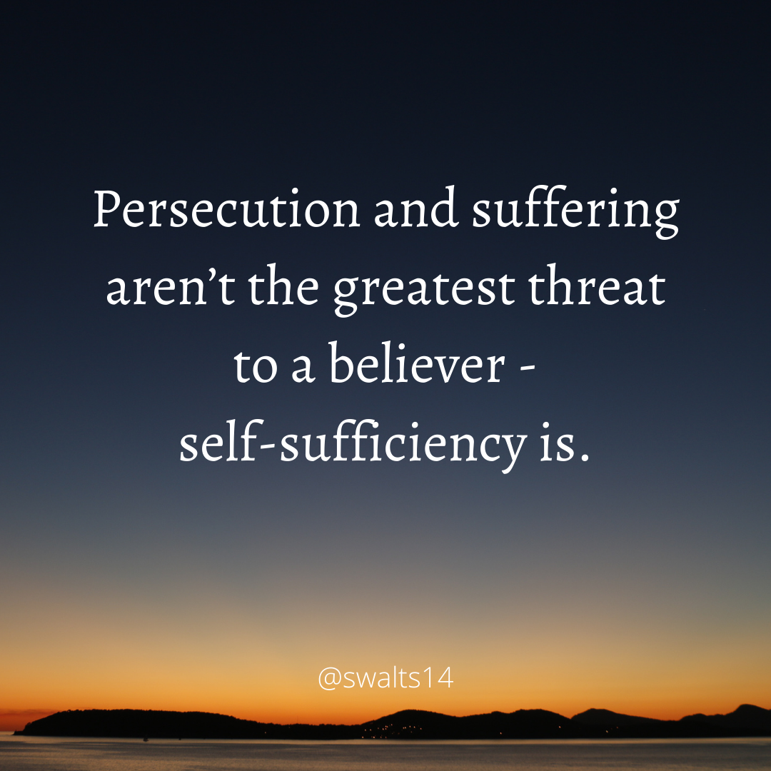 As much as we should pray for, weep with, and grieve over the atrocities happening to our brothers and sisters all over the world – in some ways we are most to be pitied. Because persecution and suffering aren’t the greatest threat to a believer – self-sufficiency is.