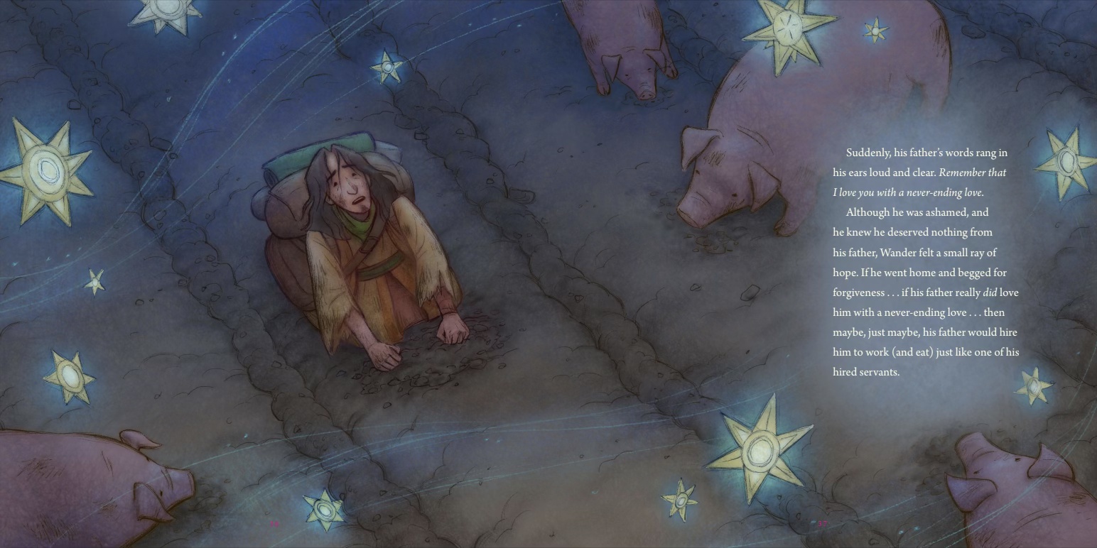 But it’s there, in the dark of night with no earthly hope to be found, that Wander remembers his father’s words, “Remember, my son, that I love you with a never-ending love”. And without hesitation, Wander took off as fast he could through each city he had traveled – in hopes that his father would show him mercy.
